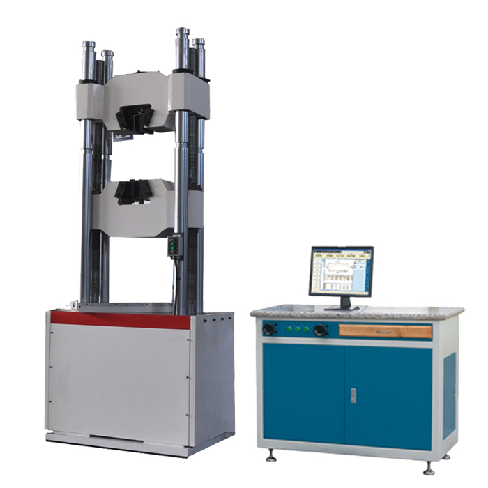 一、万能压力试验机特点 万能压力试验机加载形式为液压,负荷显示为数显,本机示值精度高,活塞行程大,而且结构紧凑,造型新型,操作简便,维修简单,搬运方便。 1、采用交流伺服系统驱动交流伺服电机,通过精密减机速减速驱动滚珠丝杠,保证了整台设备精度高、噪声低、运行平稳。 2、采用微机控制显示试验力、试验力峰值等各种信息,界面美观、简洁。 3、外接微机,对试验数据进行统计和处理,打印各种要求的试验曲线及报告,可实现存储、联网功能。 4、具有试验结束后返回初始位置的功能,高效、快捷。 5、具有工作位置的限位保护功能及过载、过流保护功能,可靠、安全。 6、品牌微机及打印机,质量保证。 二、安装与保养: 1、吊装时, 利用钳口两侧的M12的六角头螺栓,用四块起吊板将移动横梁与上横梁连接,就可用吊环螺钉吊装,安装到位后再拆去。 2、液压式万能试验机应安装在清洁、干燥、温度均匀,周围无震动,无腐蚀性气体影响的房子里,地脚螺钉布置。 3、安装地点位置适当,便于操作和维护保养。安装地基应牢固可靠,地脚螺钉应对准底座。 4、机体的水平调试方法: 用0.1/1000方框水平仪测量移动横梁的上平面,找纵横水平至±1格,若超出±1格,可在底座下在面加垫铁校正,拧紧地脚螺母。 5、电器说明: 电源为三相50Hz交流380V,组合开关H是电源总开关。将组合开关转到闭合位置时,红色信号灯L2亮,指示电源已接通。 按下控制按键SB1中的绿色接钮,则红色信号灯熄灭,绿色信号灯L1亮,指示油泵电机D已开始工作。当活塞上升到最大值时,接近开关发信号将交流接触器K线圈电源切断,油泵电机停止工作。若要人为停止工作,可按红色按钮SB2或切断总电源。 按下控制按键SB3或SB4接钮,丝杠驱动电机工作,丝杠旋转带动移动横梁上下移动,当上升、下降到最大值时,接近开关发信号将电源切断,移动横梁停止。SB3、SB4为点动按钮,只有一直按着移动横梁才会移动。 试验机外壳必须可靠接地。 6、 灌油与放油: 应定期检查油箱内油量是否达到油标孔镜高度。使用时如发现油液混浊时即予更换,同时对油箱进行一次清洗。可以倒入煤油至油箱中然后放出,如此重复几次。换油时打开后门,当环境温度为15±5℃,使用GB443-84N68机械油;当环境温度为25±5℃,使用GB443-84N100机械油。放油时可拧开侧面的油塞即可。 相关阅读: 相关产品 |